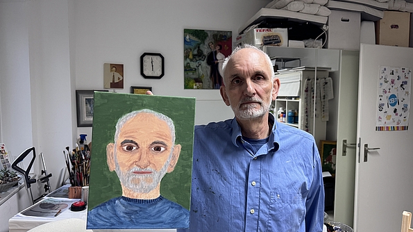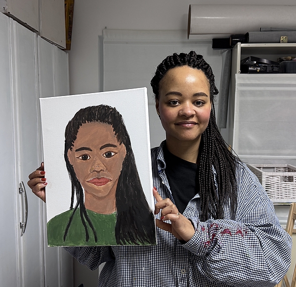 In dieser Zeit werden die Teilnehmer angeleitet ihr Gegenüber mit Acrylfarbe auf die Leinwand zu bringen. Es gibt nicht den Anspruch wirklich ein Portrait zu erarbeiten, Ähnlichkeiten werden allerdings begrüßt!
